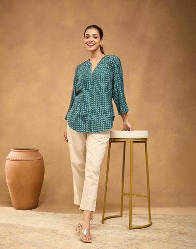 Green Rayon Blend Shirt for Smart Casual Look